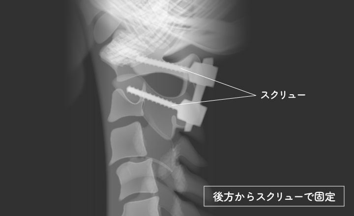 首の骨(頚椎)の後ろから手術を行います。スクリューで