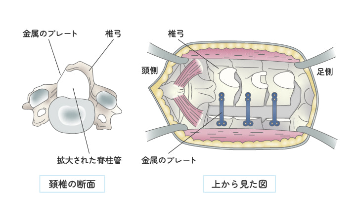 神経の通り道である脊柱管を拡大し、神経の圧迫を解除して、頚椎を再建する手術です。